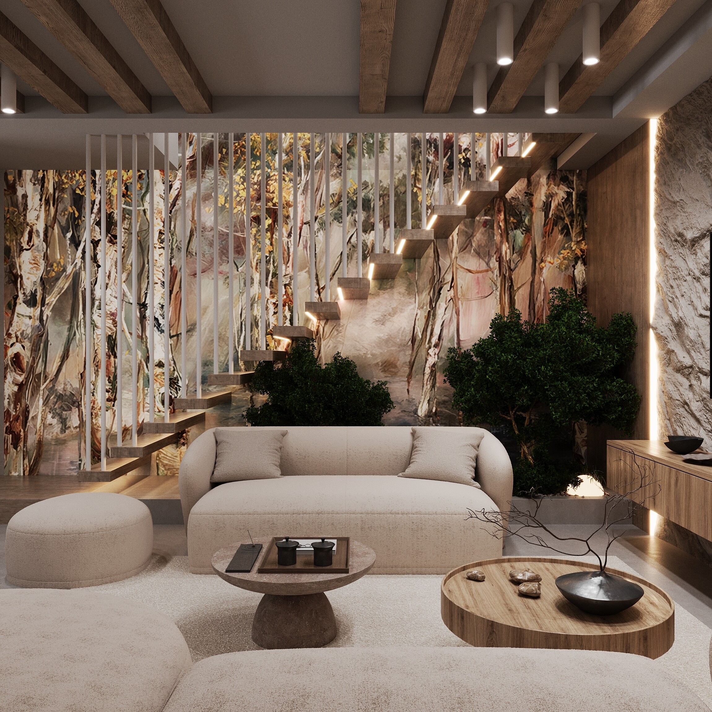 Połączenie japońskiej prostoty i minimalizmu z skandynawską funkcjonalnością i przytulnością. Dominują neutralne kolory, naturalne materiały i proste formy. Styl ten stawia na spokój, harmonię i uporządkowaną przestrzeń. Podłogi i ściany to mikrocement w odcieniach szarości wprowadza nowoczesną, gładką powierzchnię. Efekt wizualny jest matowy, lekko surowy, dobrze kontrastuje z ciepłem drewna. Materiały łatwe w utrzymaniu, odporne na wilgoć, idealne do kuchni, łazienki czy salonu. Wnętrze w stylu Japandi z mikrocementem, szarością i drewnem ma bardzo charakterystyczną atmosferę — subtelnie łączy spokój, prostotę i naturalne ciepło. Dominuje łagodna, stonowana paleta kolorów: szarości mikrocementu tworzą neutralne tło, a drewno wprowadza naturalne, ciepłe akcenty. Przestrzeń wydaje się uporządkowana i pozbawiona zbędnego chaosu – wszystko ma swoje miejsce.