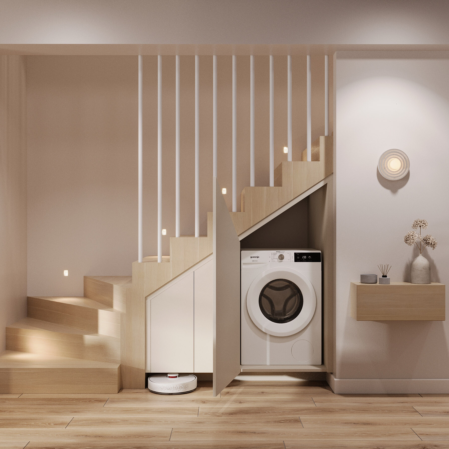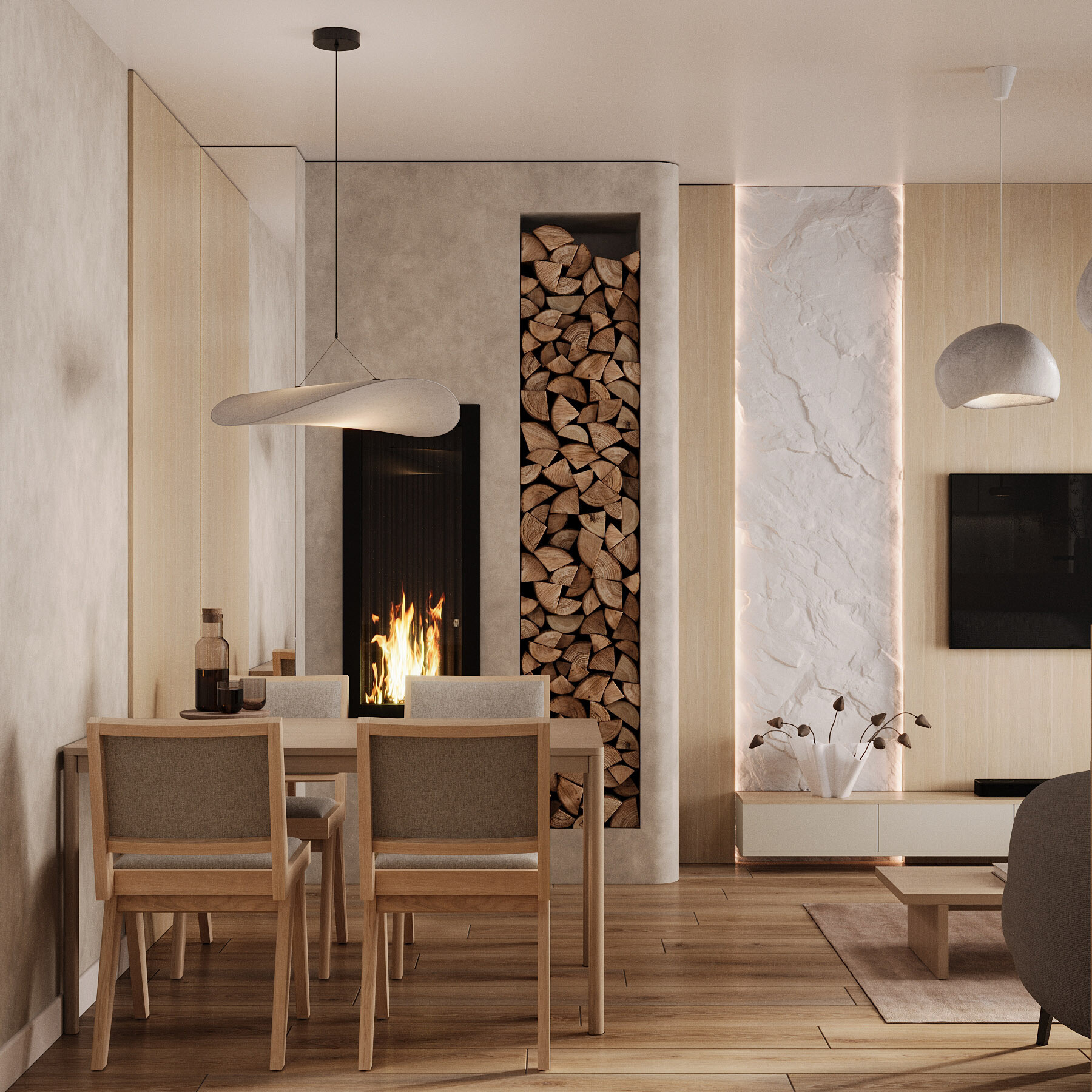 Realizacja wnętrz tego domu jest przykładem stylu japandi z elementami stylistyki skandynawskiej. Materiały dominujące to jasne odcienie drewna, mikrocement i kamień. Stylistyka japandi tworzy bardzo przytulne, ciepłe i ponadczasowe wnętrza. Projekt wnętrza po części został zrealizowany przez ekipy wykonawcze z jakimi stale współpracujemy.