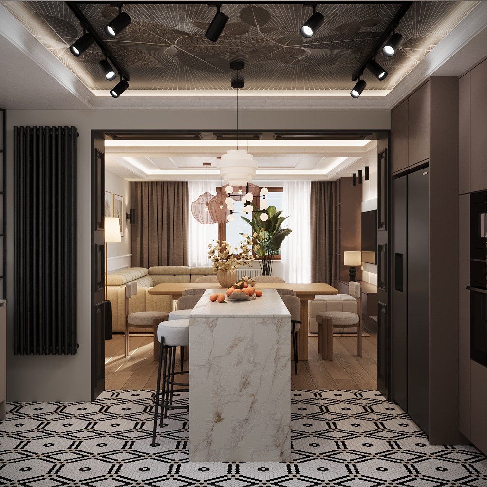 To mix kontrastów, który – jeśli jest dobrze zaplanowany – tworzy wyjątkową, ponadczasową przestrzeń. Wnętrze jest przytulne i lekkie, z wyczuwalnym minimalizmem, ale bez surowości – widać tu balans między prostotą a przyjemną atmosferą. Baza to neutralne odcienie (beż, ciepła biel, krem). Loftowy akcent tworzą czerń, grafit, brąz i antracyt. Klasyczny efekt wprowadza sztukateria ścienna odpowiednio zaprojektowana na ścianach. Nowoczesna elegancja z charakterem. Surowość loftu zostaje złagodzona ponadczasową estetyką klasyki, a klasyka zyskuje świeżość dzięki industrialnym elementom.