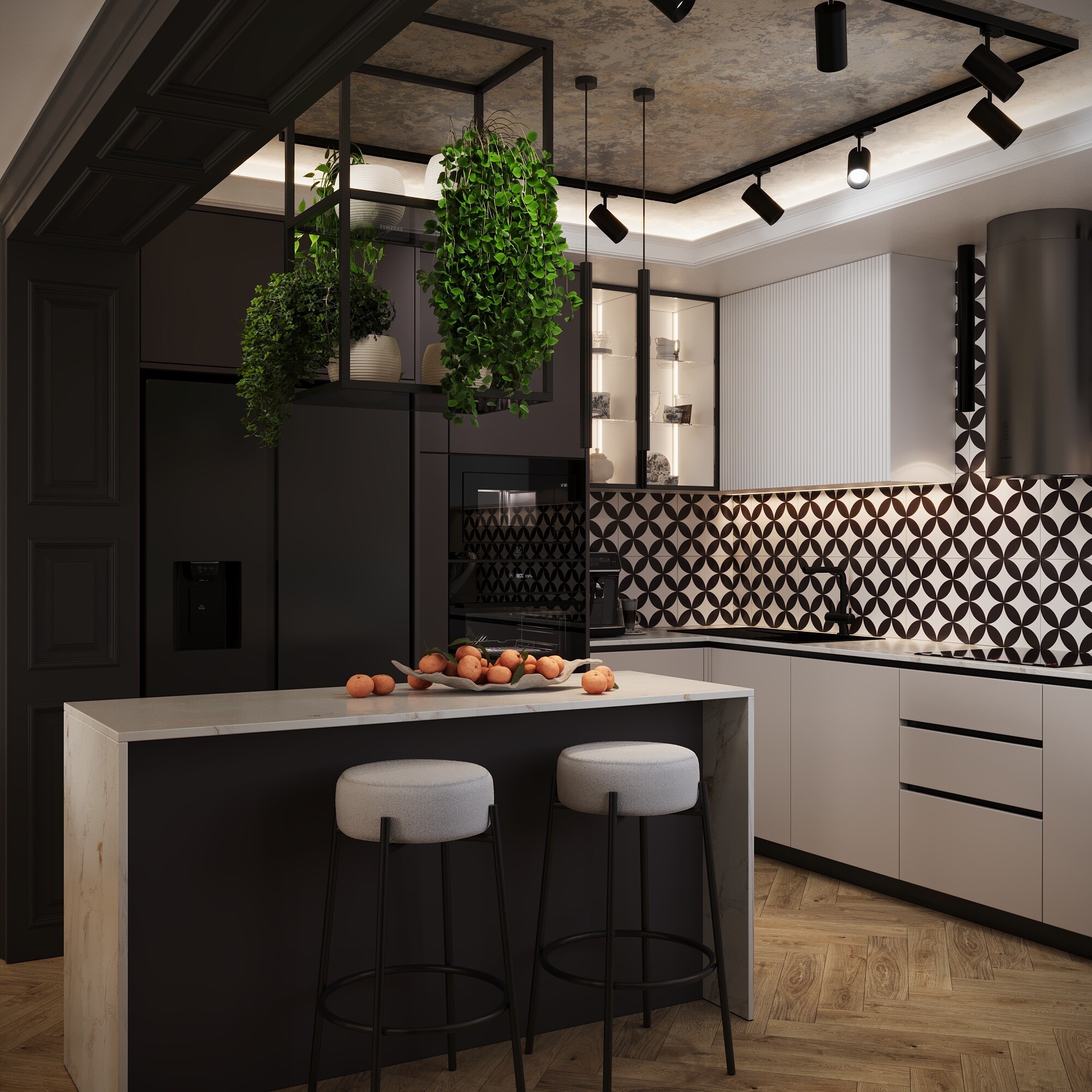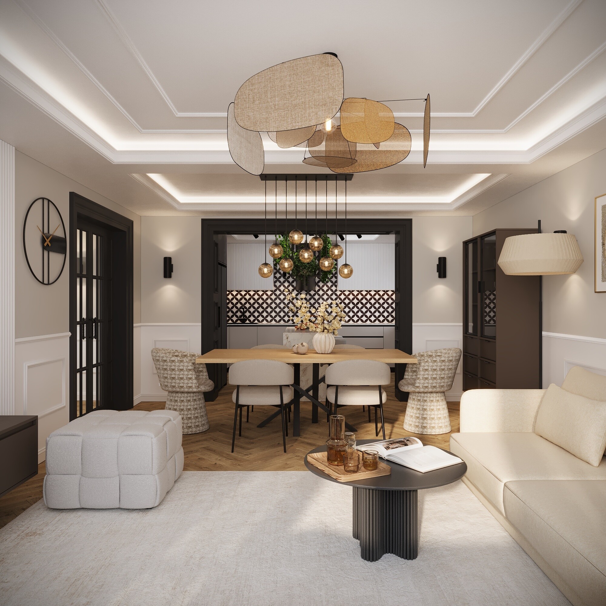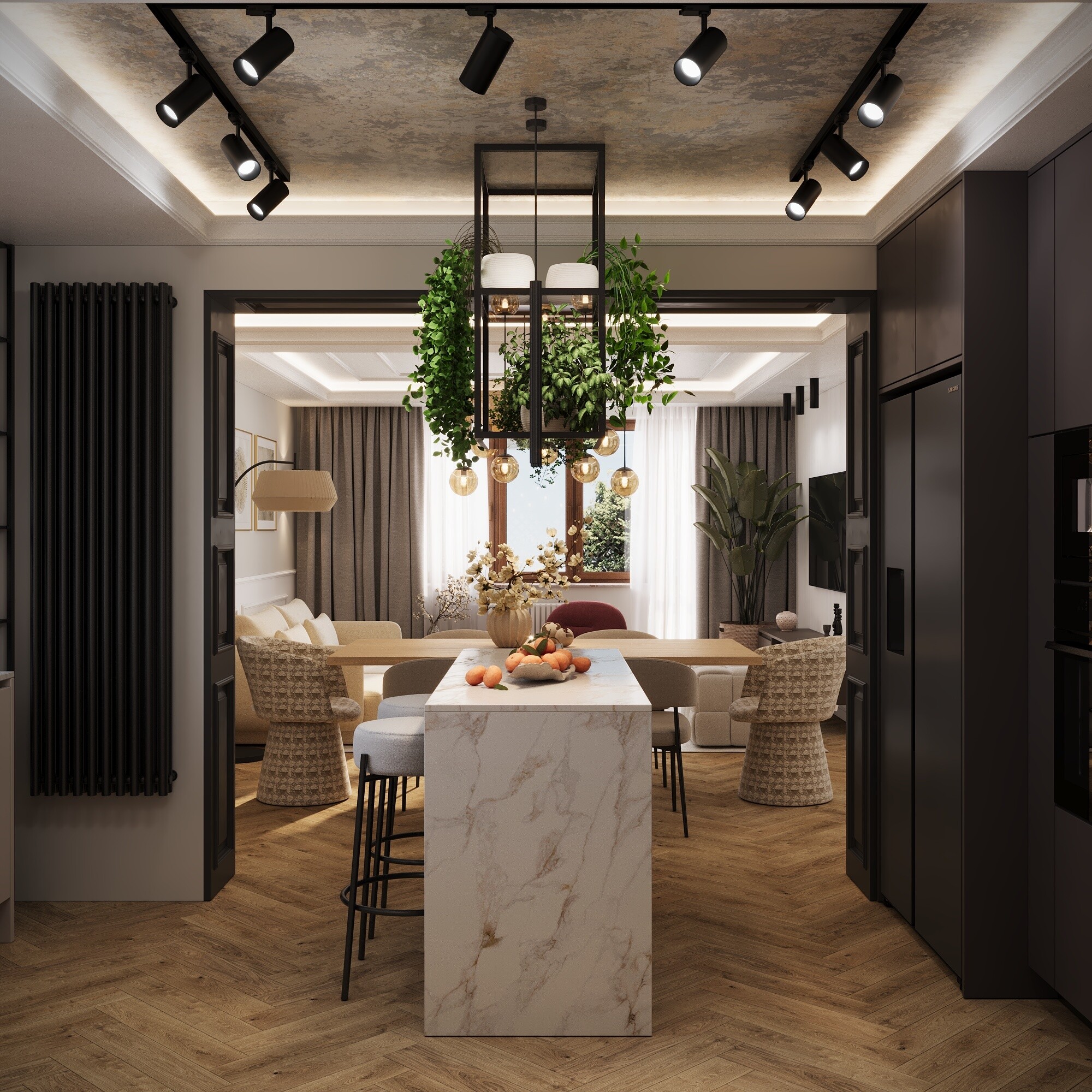 Połączenie stylu loftowego i klasycznego daje niezwykle ciekawy efekt – wnętrze staje się jednocześnie eleganckie i nowoczesne, surowe, ale też przytulne. To mix kontrastów, który – jeśli jest dobrze zaplanowany – tworzy wyjątkową, ponadczasową przestrzeń. Wnętrze jest przytulne i lekkie, z wyczuwalnym minimalizmem, ale bez surowości – widać tu balans między prostotą a przyjemną atmosferą. Baza to neutralne odcienie (beż, ciepła biel, krem). Loftowy akcent tworzą czerń, grafit, brąz i antracyt. Klasyczny efekt wprowadza sztukateria ścienna odpowiednio zaprojektowana na ścianach. Nowoczesna elegancja z charakterem. Surowość loftu zostaje złagodzona ponadczasową estetyką klasyki, a klasyka zyskuje świeżość dzięki industrialnym elementom.